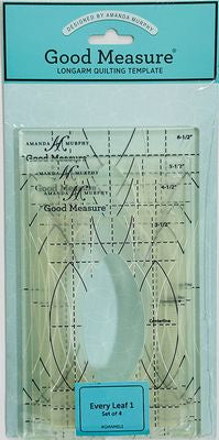 Amanda Murphy 1/4 in (6mm)Every Leaf Set 1 Every Leaf set 1 (4 pcs) Long Arm templates from Amanda Murphy 4 ruler templates with a narrow leaf design. Sizes: 3 1/2”, 4 1/2”, 5 1/2” and 6 1/2” in height