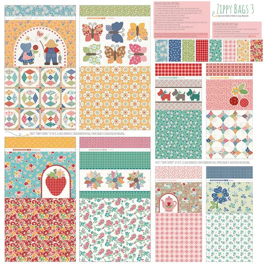Don't miss out on these adorable bag panels that make 8 zipper pouches. Kit includes a variety pack of zippers. Designed by Lori Holt for Riley Blake. The panels are a light-weight canvas.